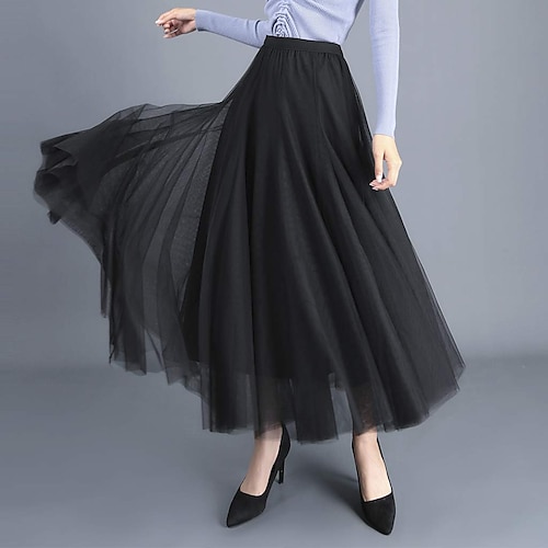 Jupe Tutu longue mi-longue asymétrique en maille, taille haute, à volants, en Tulle ir...