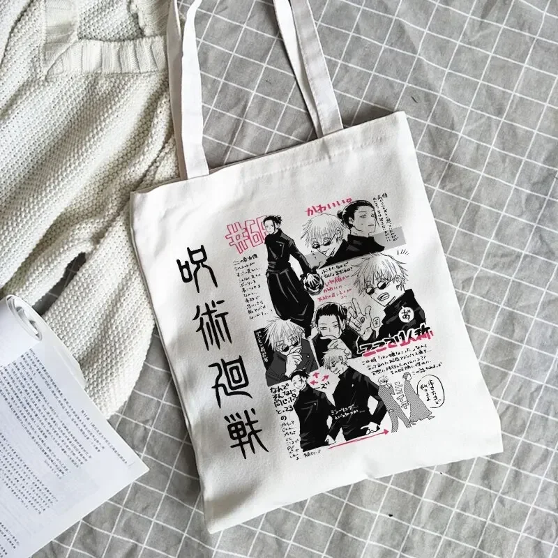 Jujutsu Kaimmense Canvas Bag for Women, Japanese Anime, Initiated Bag, Ins Harajuku, Vintage Cartoon...