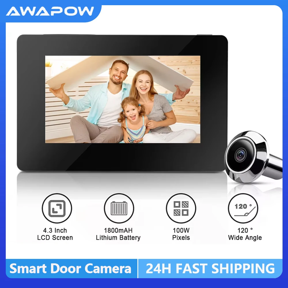 Caméra de sonnette judas Awapow 4,3 pouces 145 ° Visionn...