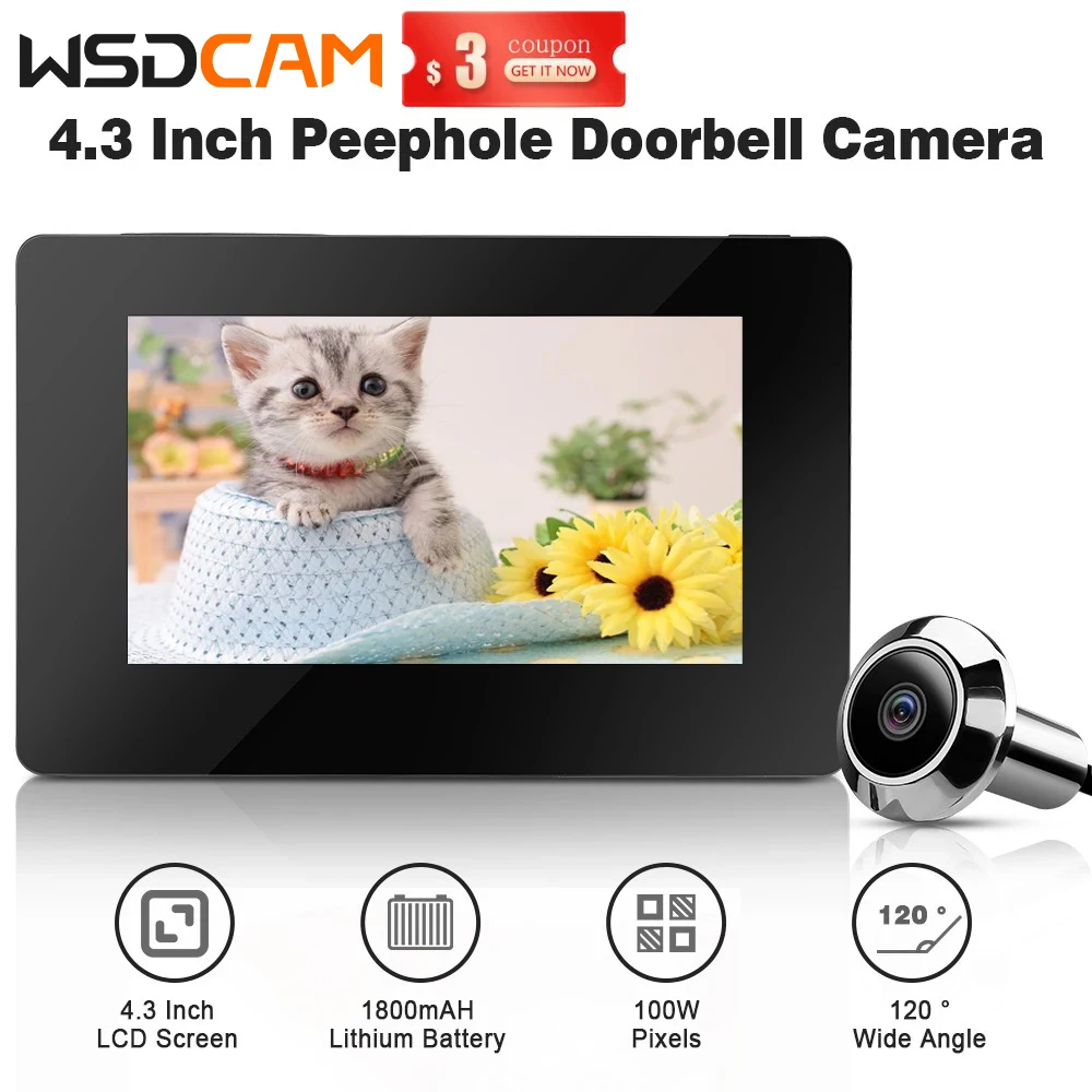 WSDCAM 4,3 pouces 720p visionneuse de judas de porte 120 ° Caméra de sonnette grand Angle...