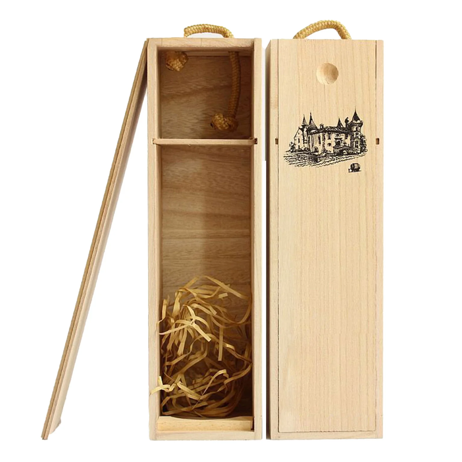Boîte à vin en bois à bouteille unique avec couvercle, boîte de rangement ...