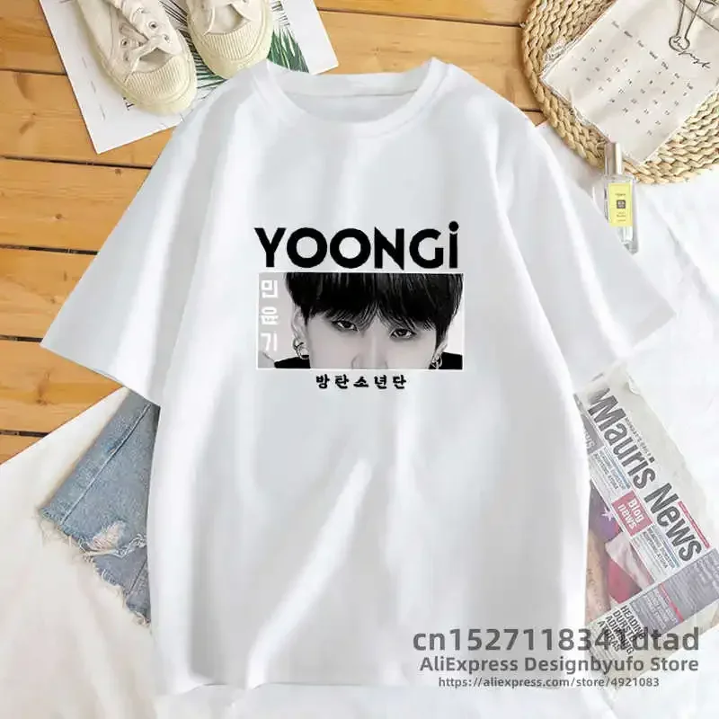 Agust D-T-shirt en coton à manches courtes pour femmes, T-shirt graphique Yoongi, Mode cor&ea...