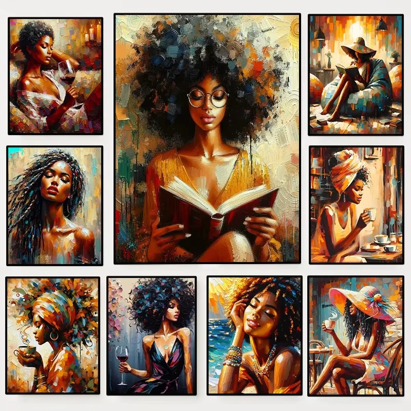 Affiche de relaxation de femme noire afro-américaine, livre de lecture de fille Cool, peintur...