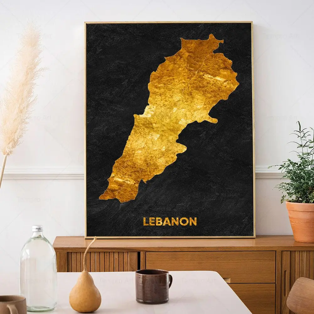 Liban Espagne USA France Arménie Suède noir et or impression mur Art toile peinture pa...
