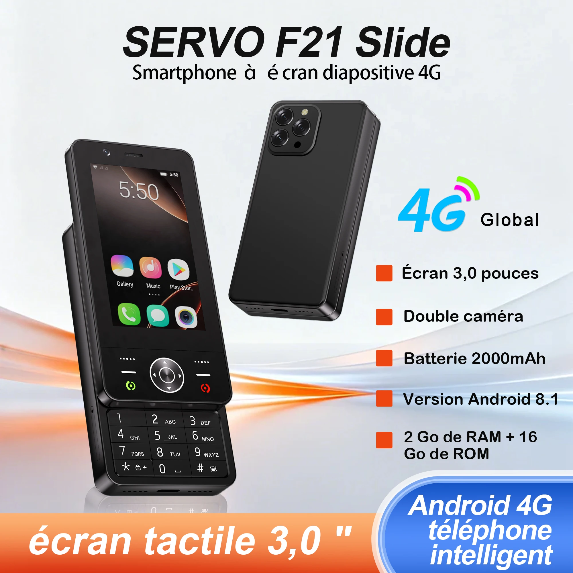 Smartphone SERVO F21 SLIDE à écran tactile, système d'exploitation Android, 4G ...