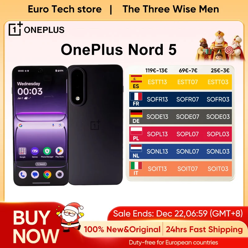 Nouveau Smartphone OnePlus Nord 5 5G Snapdragon ™ 8s Gen 3 Écran AMOLED 6,83" 144 ...