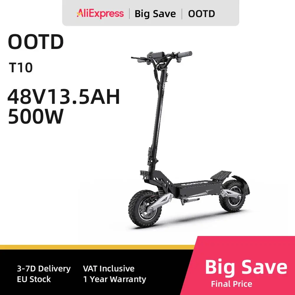 • OOTD T10 Scooter électrique 500W moteur 48V13.5AH/18AH batte...