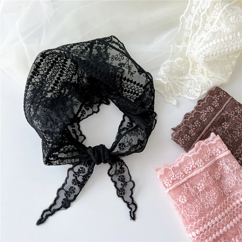 Foulard triangle en dentelle creuse pour femme, foulard rond pour femme, bandeau pour cheveux, banda...
